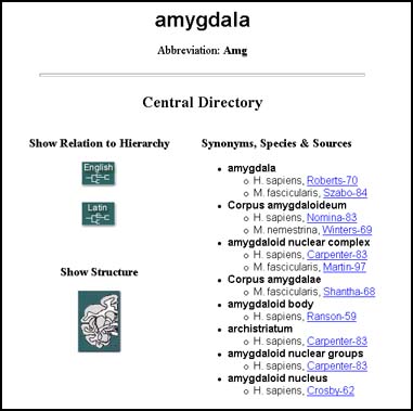 Every structure in the NeuroNames Brain Hierarchy has a unique abbreviation that is based on its standard English name. The abbreviation for a given structure is presented at the top of its Central Directory.