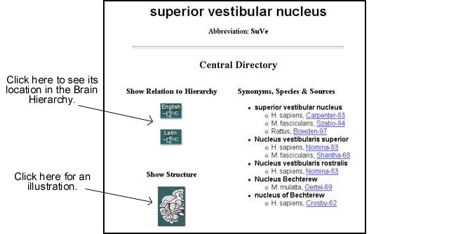 One finds information about a brain structure through its Central Directory.